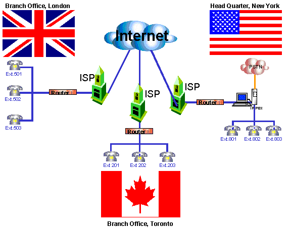 Multi-Location PBX provides IP communication between branch