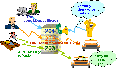 and telephone, each having their own extension number, voice